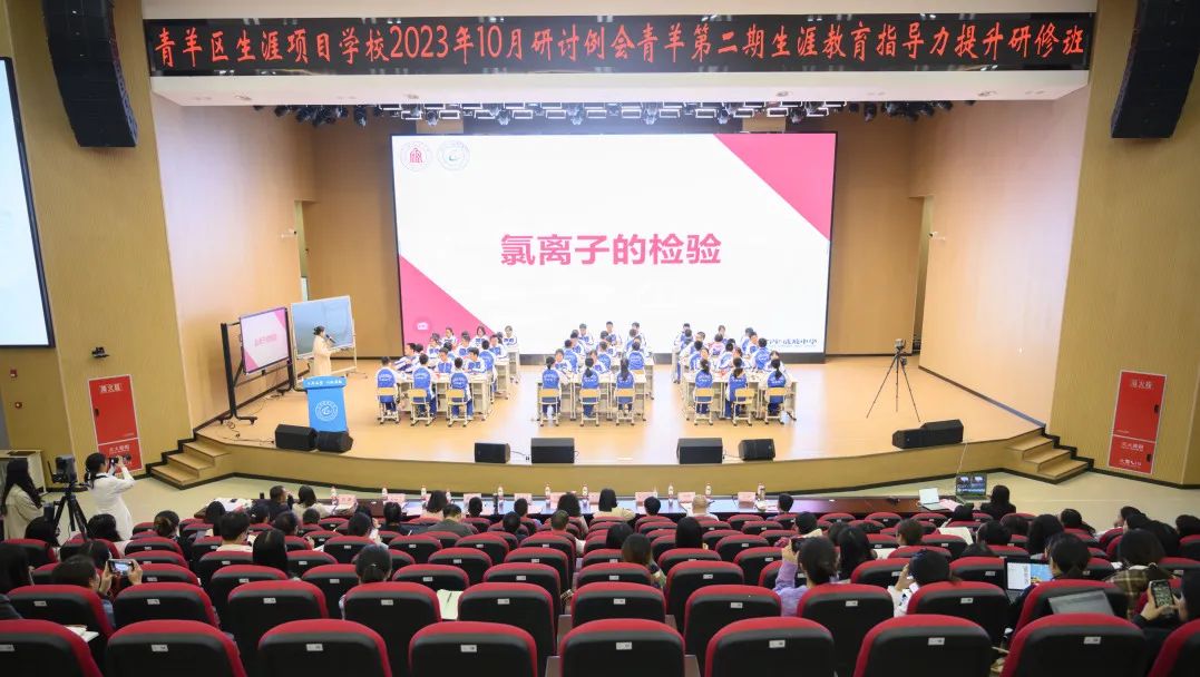 生涯教育组走进成都市石室·成飞中学,参加了青羊区生涯教育项目“10月研讨例会暨青羊区第二期生涯研修班第9次培训”。成飞中学刘凤霞老师展示了一节高一化学与生涯教育融合课《氯离子的检验》,通过学生扮演水质检验员角色解决现实问题,让学生体会化学知识在实际生活中的运用,加深了对学科意义的认识和社会责任感,促进学生生涯力发展。渝中区心理教研员吕玮老师进行了精彩点评并介绍了渝中区生涯教育开展情况,为老师们打开了视野。