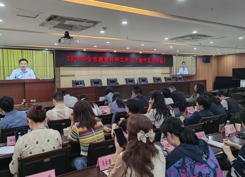 渝中区教育科学规划领导小组成员,各中小学校教科室主任、科研骨干教师代表在分会场参会。