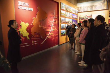 走进一间间展厅、流连于一个个主题,大家时而驻足观看、凝神思索;时而感慨万千、低声交流,在参观中接受着一场心灵的洗礼,也在交流中接受着一堂令人深受震撼、深受触动、深受鼓舞的党史学习教育课、革命传统教育课、党性实践教育课。随着参观队伍,大家缓缓而行,仿佛与重庆的前世今生来了一场时空对话。它与我们伟大祖国同步、与时代同行,经历了刻骨铭心的磨难,也进行了感天动地的奋斗,更创造了彪炳史册的伟业。